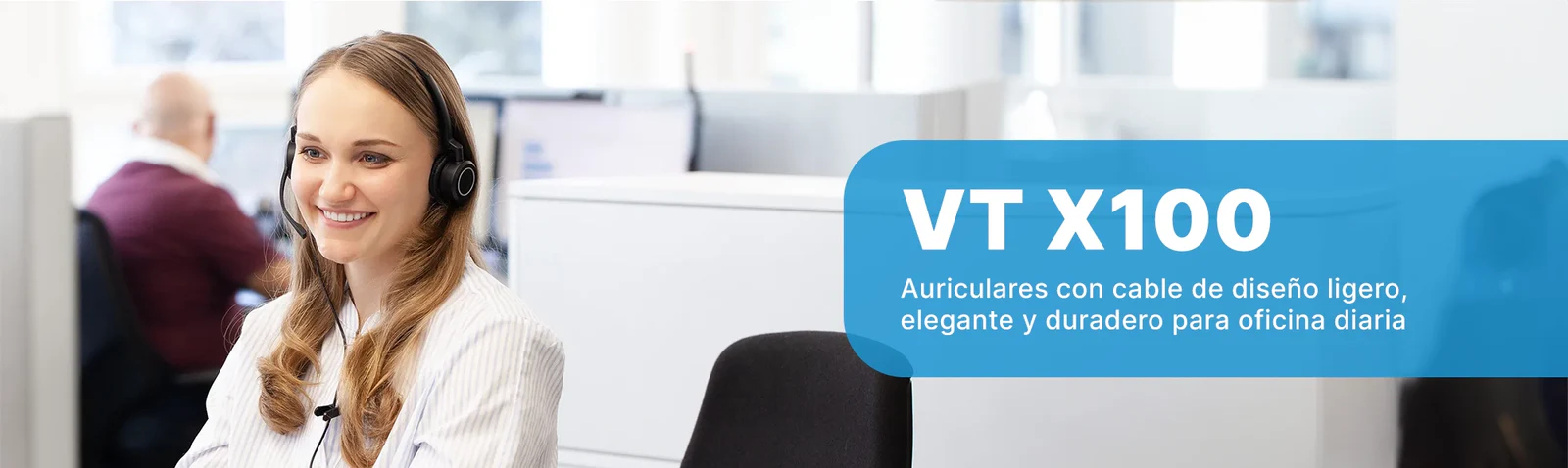 El auricular con cable VTX100 es muy fácil de operar, duradero y cómodo de usar, satisfaciendo las necesidades de los empleados en el centro de contacto, oficina de negocios y entretenimiento diario.